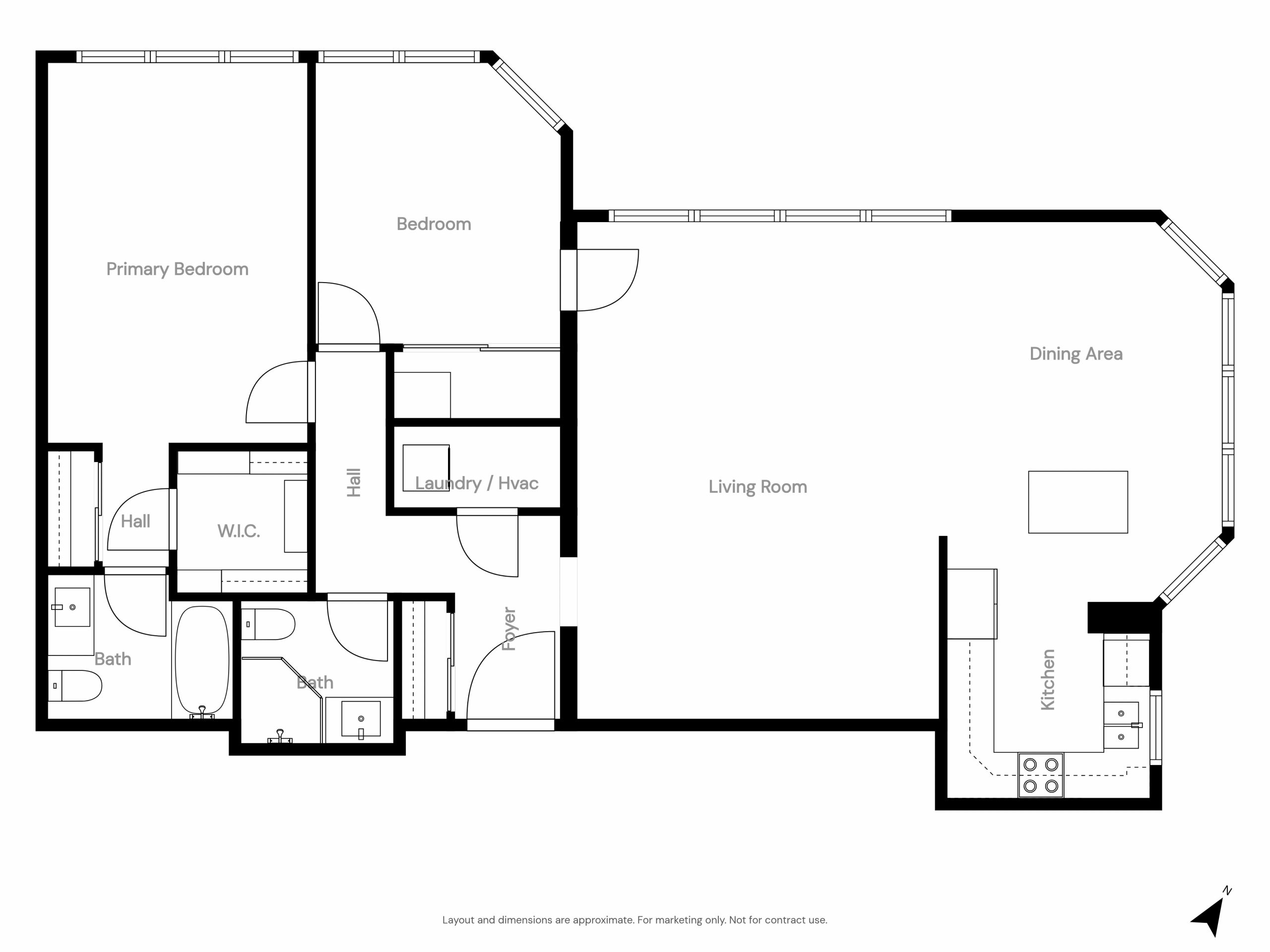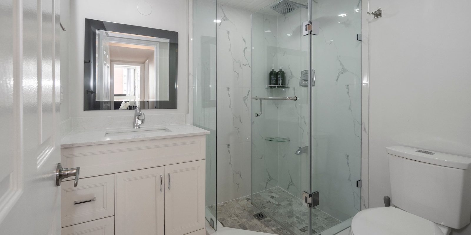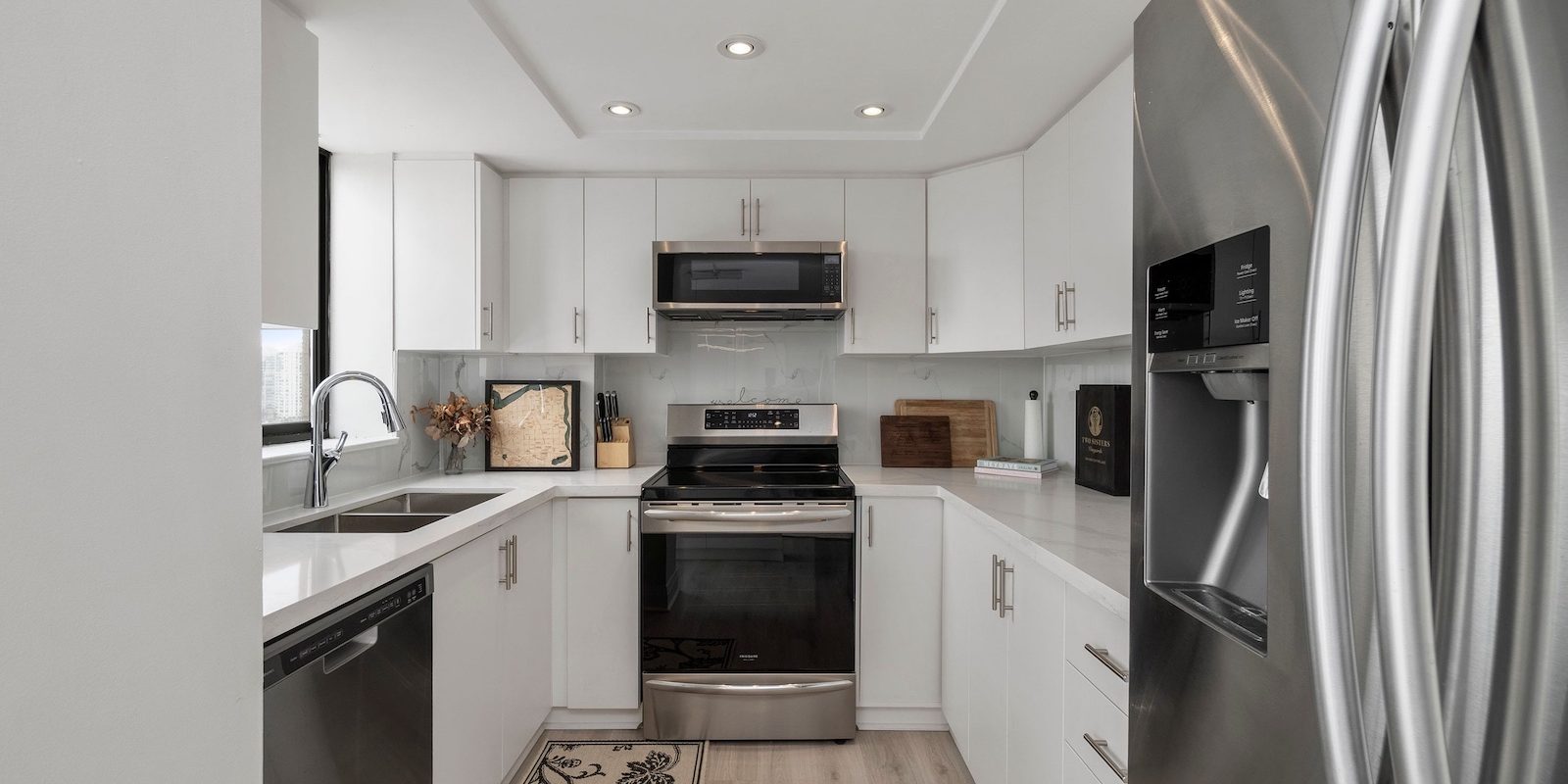 Updated with meticulous attention to detail, this beautifully refreshed suite includes a new kitchen (2021) with a center island, quartz countertops, a stylish backsplash, and stainless steel appliances. Modernized washrooms (2021), custom closet organizers, and updated electrical light fixtures and blinds (2021) complete this turnkey offering.